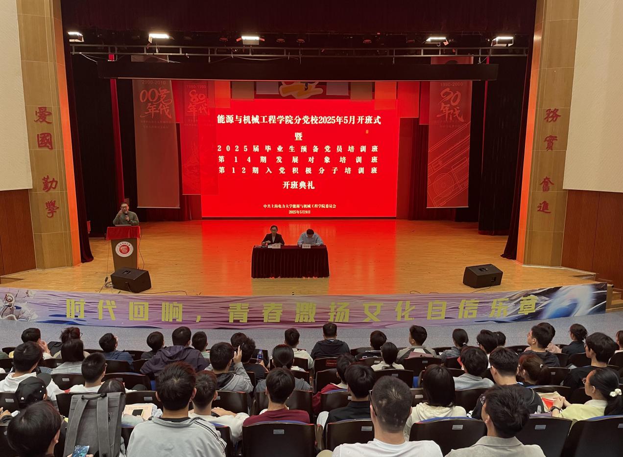 2025年5月9日下午13时,能源与机械工程学院分党校在临港校区大学生活动中心隆重举行了2025年5月党校开班式。学院党委副书记周婷、原上海电力大学宣传部部长李家珉教授出席会议,第12期入党积极分子培训班、第14期发展对象培训班及2025届毕业生预备党员培训班全体学员参加开班式。开班式由学院党委委员、专职组织员王喆主持。