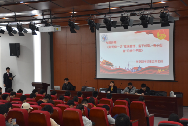 2018年11月27日16:00,能源与机械工程学院初级团校第二讲在学术楼103举行。王云欢老师作主题为《如何做一名“充满激情、富于创造、勇于担当”的学生干部》的专题讲座。