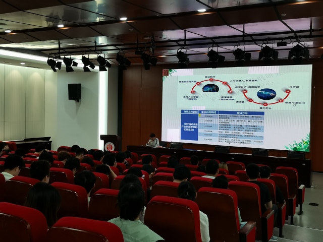 仇玮民首先对《推动未来产业创新发展的实施意见》进行了深入解读,重点分析了未来产业的重点布局领域,包括元宇宙、脑机接口、量子信息等前沿科技方向。仇老师特别结合能机学院的专业特色,介绍了新能源汽车零部件供应商领域的发展潜力,鼓励学生关注行业动态,提前做好职业规划。