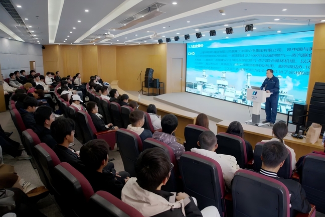 当天下午,能机学院组织70余名师生赴企业开展实践学习活动。在多功能厅,师生们集中观看企业宣传片、聆听能源科普讲座,并与优秀校友展开深度交流座谈。随后,在工作人员引导下,同学们先后参观企业品牌宣传长廊及生产现场,近距离感受企业践行新发展理念、培育新质生产力、推进绿色低碳高质量发展的实践成果,有效增强了专业认同感与行业使命感。