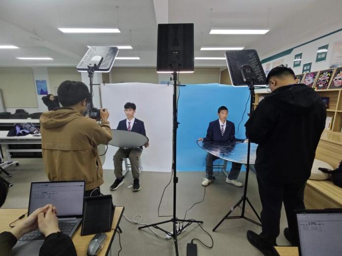 活动现场暖意融融,各服务区域有序排布,吸引了大批学子驻足参与。在“仪容焕新助力”区,学生可免费借用合体的西装、衬衫,并获得快速发型整理与基础妆容打理建议,确保以最佳职业状态进入拍摄。“本来还在为求职证件照的穿搭发愁,学院提供的服务太贴心了,解决了我的燃眉之急。”现场参与活动的学生说道。