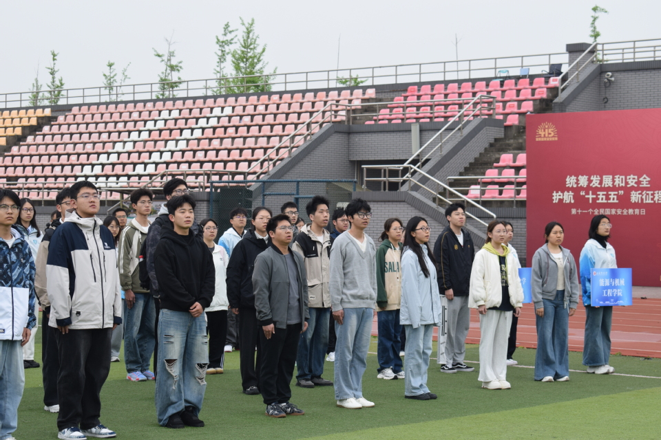 此外,我院积极组织师生参与学校全民国家安全教育日升旗仪式。庄严国旗下,全体师生肃立致敬、庄严宣誓,在晨光中厚植家国情怀、扛起安全使命。仪式后,同学们驻足观看国安知识展板,深入学习总体国家安全观、能源安全、网络安全等内容,直观感受国家安全与个人成长、国家发展的紧密联系,进一步筑牢思想防线。