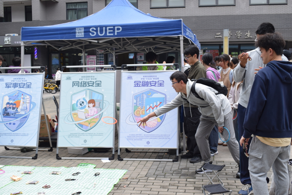 4月15日全民国家安全教育日,临港校区一食堂广场“国安闯关・青春护航” 趣味游园会人气高涨。活动打破传统宣讲模式,设置5大互动闯关环节,把抽象安全知识转化为沉浸式体验,让同学们在趣味答题、协作挑战中主动学习、深化理解,实现“被动听讲”向“主动探索”转变,在轻松氛围中提升安全素养、强化责任自觉。
