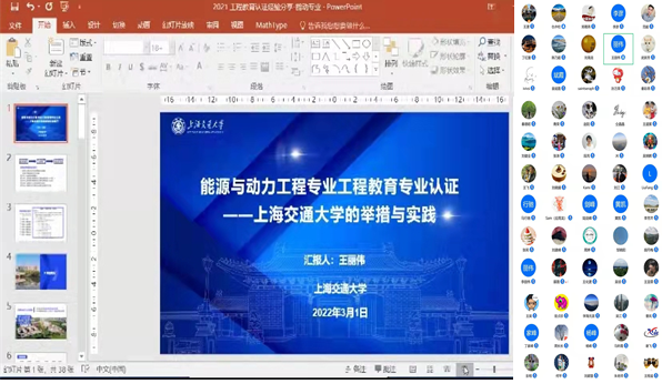 近期,根据中国工程教育专业认证协会《关于受理2022年工程教育认证申请的通知》,能源与机械工程学院能源与动力工程专业申请被正式受理。为了开展好下一步的自评报告撰写和迎接专家进校考察,3月1日能源与机械工程学院特邀上海交通大学教学发展中心主任王丽伟教授为学院教师作题为“能源与动力工程专业工程教育专业认证——上海交通大学的举措与实践”的线上辅导工作。会议由仇中柱副院长主持,能机学院全体教师参加辅导会。