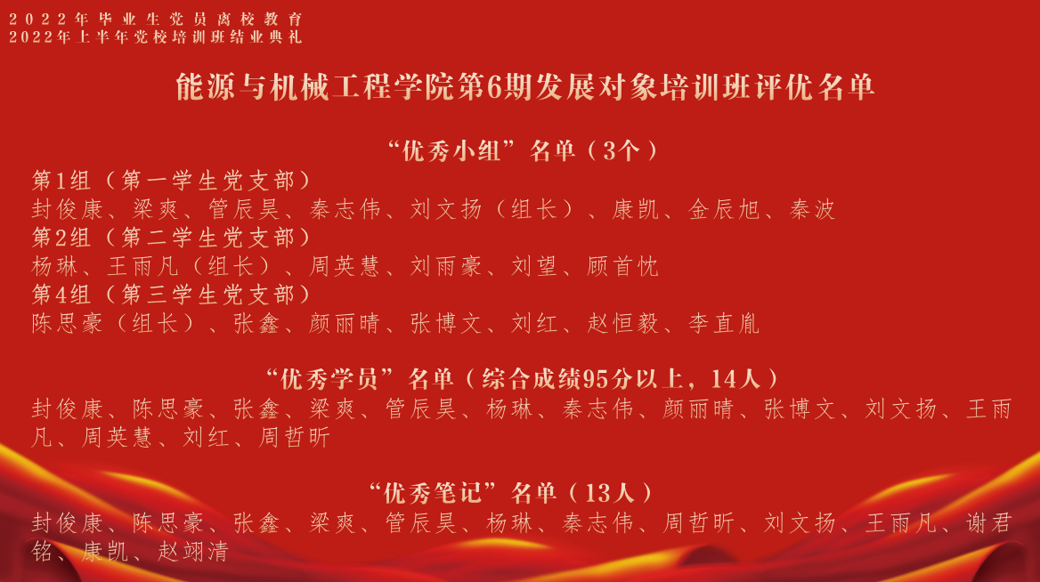 能机学院召开2022届毕业生党员离校教育、2022年上半年党校培训班结业典礼