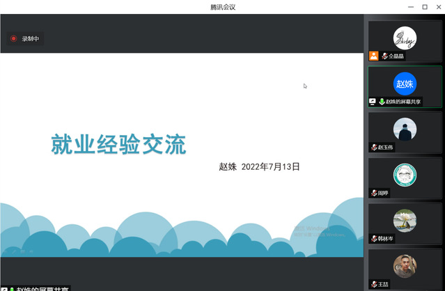 7月13日,能机学院于腾讯会议组织召开毕业班辅导员就业专项工作的交流研讨会。会议邀请了2021年度上海市就业工作先进个人赵姝出席,学院党委副书记周婷、学院就业工作联系人赵玉伟、2022届毕业生辅导员王喆、姜妍丽、张鸿燕,以及2023届毕业班辅导员韩林岑、周长长、仝晶晶参加。会议由仝晶晶主持。