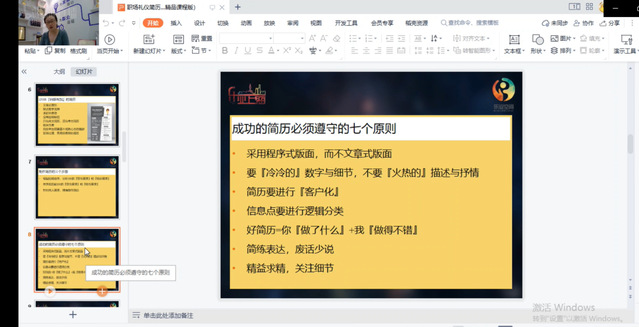 随后,陈燕针对每一个原则都列举了具体的示例作为补充,还指出了简历上应该避免的一些小失误。如,避免使用第一人称“我”“我们”,避免语句内容的重复,避免将个人信息等内容占据简历的大部分位置等等。