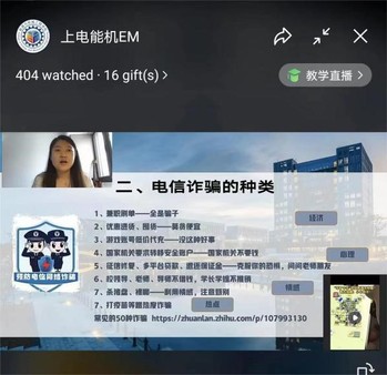 9月24日,能源与机械工程学院依托学院视频号“上电能机EM”以“入‘新’谨防电诈,共建平安校园 ”为主题,采用学生喜闻乐见的直播方式开展了一次有趣、生动的防诈视频直播。学院安全工作负责人姜妍丽主讲,主要围绕八种常见的诈骗形式展开,通过生动的案例分析、深入的剖析解读,将安全教育中十分重要的防诈反诈内容在新生中进行全面推广和深入介绍,让学生们全面掌握电信诈骗的基本手段和方式,切实提升防范意识,营造全民防诈的氛围。同时,还提醒学生对传销、人口买卖等违法犯罪等行为提高警惕,注意甄别信息、不要听信他人蛊惑等多项安全注意事项,即便遇到事情也不要慌张,要及时联系自己的辅导员,并谨记临港地区快捷报警电话021-68283110。本次活动进一步增强新生安全意识、有效防范无孔不入的电信诈骗,全面保障新生入学的平安有序。