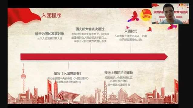 9月17日,能源与机械工程学院团委组织开展了2022级新生入团启蒙教育,切实帮助新生加深对共青团的了解并规范入团动机。学院团委副书记助理何雨桐以“点燃青春火焰,争做共青团员”为主题,详细介绍了中国共产主义青年团的组成、团旗、团徽、团歌及团员的基本权利与义务等内容,让未入团的新生对中国共产主义青年团有了更清晰的认识。学院团委书记周长长就共青团改革方案中关于团员发展的内容进行了详细解读,对入团申请书规范等问题进行了现场解答,鼓励广大新生从学习成绩、学生工作、志愿服务、社会实践、科技创新等各个方面去完善提升自己,以实际行动尽快加入到团组织中来。