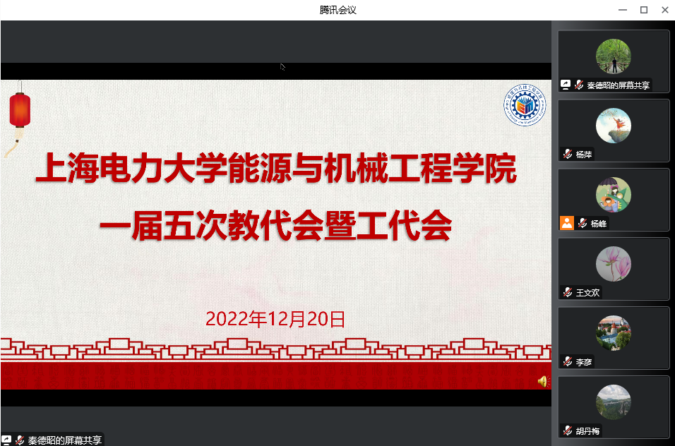 12月20日上午,能源与机械工程学院一届五次教代会暨工代会于线上顺利召开。校工会委员、环境与化学学院党委书记陶莹应邀出席,学院党政班子和全体教职工参加,会议由院党政办公室主任杨萍主持。
