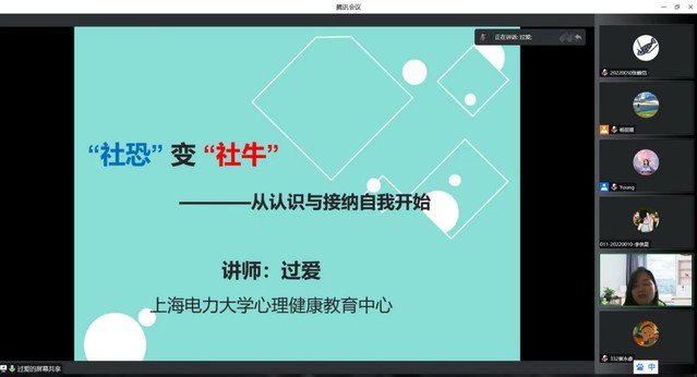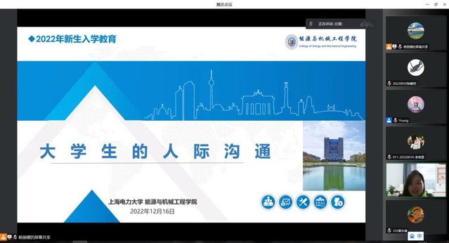 为有效引导新生优化个性心理品质、提高心理调适能力,构建良好可持续的人际交往关系,尽快完成大学生活的调整和适应,121613:30,能源与机械工程学院组织全院新生齐聚云端,开展了一场主题为“大学生的人际沟通”的专题讲座,讲座由校心理健康教育中心专职心理教师过爱主讲。