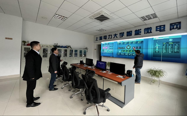 随后,双方共同前往参观学校智能微电网系统,临港新校区建设综合办公室杨涛陪同,并介绍了学校临港校区整体建设情况以及智慧综合能源微电网系统整体规划、建设和运行模式。参观过程中,朱未高度评价我校智慧综合能源示范项目,作为建设绿色、低碳、节能、环保、智能校园的有益实践,这样的模式有着重要的借鉴意义和应用价值,同时期望双方在临港校区三期建设中能够有更多深入的合作。
