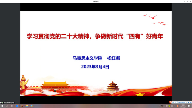 2023年3月4日,能机学院分党校通过线上方式开展第二次集中培训。第二次讲座邀请了上海电力大学马克思主义学院副教授杨红娜、中国计量大学马克思主义学院讲师赵昊杰、中国浦东干部学院讲师何帆、松江区委党校讲师李谦作为讲座嘉宾。
