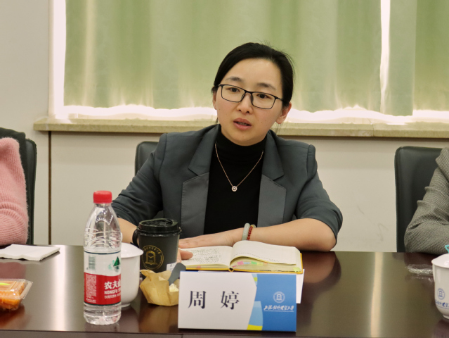 周婷详细介绍了我院科创竞赛和思政教育特色工作。她表示,希望两个学院能够持续密切交流,推动优势互补,共同谱写学生工作的新篇章。随后,双方围绕学生思政育人、党团建设、特色品牌活动等相关工作进行交流研讨,分享典型案例,现场气氛融洽热烈。