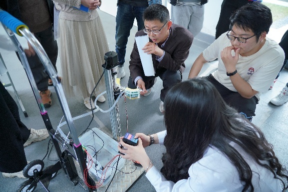 随后,所有参赛团队逐一进行路演,评委们根据评审规则和要求,认真聆听每个团队的作品设计理念、制作原理和整体介绍,同时观看了作品的实物演示围绕“智能农业”与“低碳生活”比赛主题,参赛团队设计了诸如“摘苹果机械臂”“机械松鼠”“实用应用无人机”等许多新颖奇妙与实用的作品获得现场老师和同学们的好评。同时,评委们也针对作品的设计和制作提出建设性的指导意见,帮助各参赛团队在后期更好地进行作品的完善和提升,活动现场气氛空前热烈