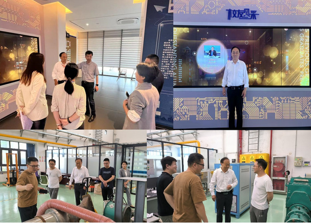 会后,赵东楼先生一行前往学校校史馆和能机学院实验室进行参观,作为校友回顾学校发展历史、关注学校当前发展方向,并与能源动力、新能源等相关专业的教师进行座谈,共同探讨企业最新的技术攻关,探索校企深度开展产教融合的措施与路径。