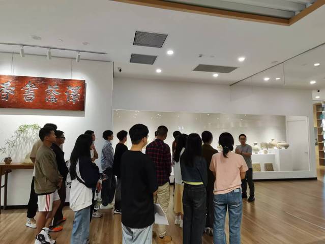 器山书局负责人徐巍为同学们介绍书局内的陈设,从金缮修复的古老瓷器,再介绍到茶韵悠然的茶盏茶盅,从生动有趣的古代大猫图介绍到现代《微生物》系列的独特艺术。在徐巍老师的娓娓道来中,同学们纷纷表示感受到了器山书局浓厚的文化气息。