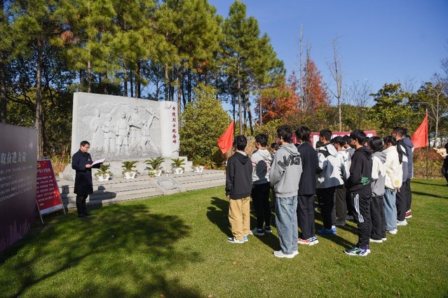 师生代表一同祭扫书院烈士纪念碑和浦东公安英烈墙,为革命烈士们及在和平年代奉献出生命的公安干警们敬献鲜花并进行鞠躬默哀。在陵园讲解员的带领下,参观了园内红色教育景点,进一步提升学生爱国情怀、培育文化素养,加强青年学生的文化自信。