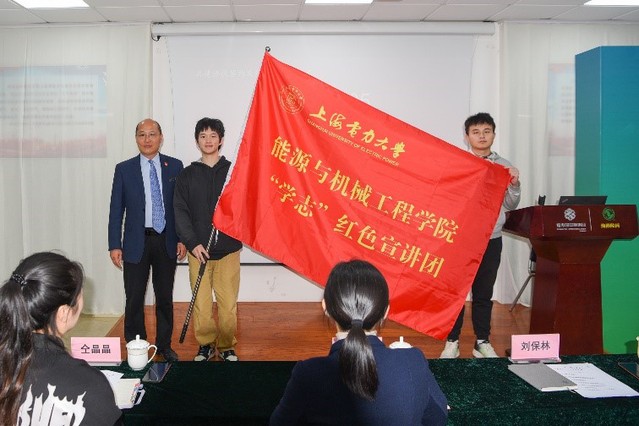 作为能机学院大学生社会实践基地的共建单位,刘保林为“学志”红色宣讲团授旗,对“学志”红色宣讲团未来的发展寄予厚望,鼓励同学们能够更多更好地宣传红色历史、弘扬红色文化、传承红色基因,激发广大青年的爱国热情。