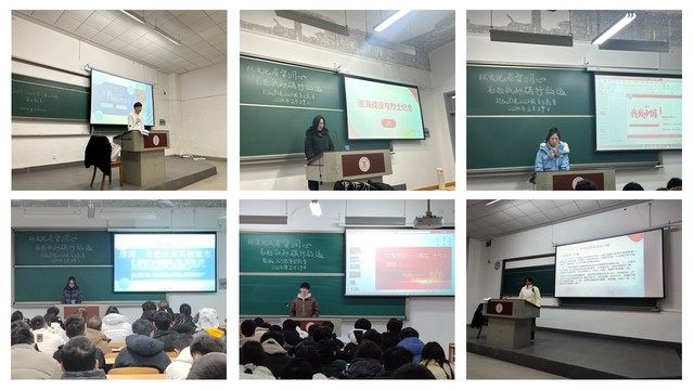 学志团作为学院的红色理论宣讲团,积极结合时事热点,深入班级及团支部进行红色精神及党史学习教育的分享。在本学期“以传统文化厚植家国情怀”的首日教育主题班会中,赵鸿宇、王子妍、方靖毅、陈永胜、孙倩等同学前往各个班级中,分别为大家宣讲了湘江战役、渡江战役、淮海战役、安徽省红色文旅资源等内容。不仅分享自己寒假实践期间的所感所悟,也让更多的同学们了解到先烈们英勇奋斗的故事,激励同学们踔厉奋发,奋勇向前!