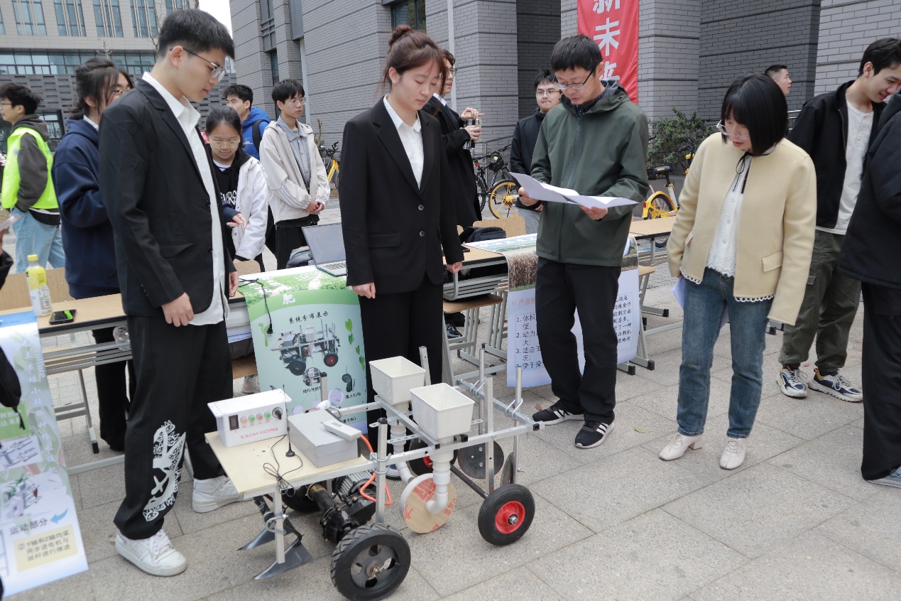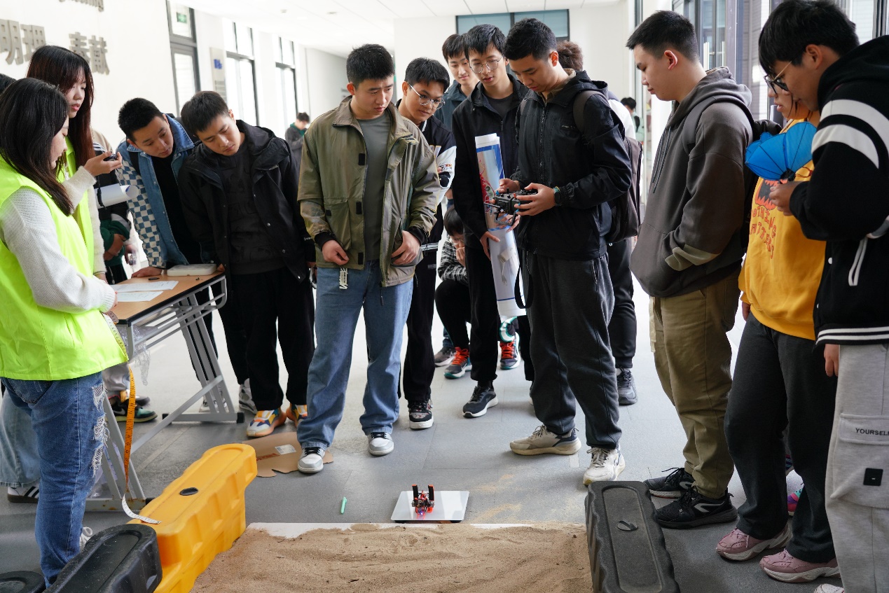 本次比赛由教务处主办、能源与机械工程学院承办,面向全校开展,经过筛选共有四十一支队伍参赛,分为兴农机械组、高性能仿生机械组和创意组三个赛道。比赛现场选手们布置作品展示海报、调试作品的运行,做最后的答辩准备,现场呈现一番紧张刺激的氛围。