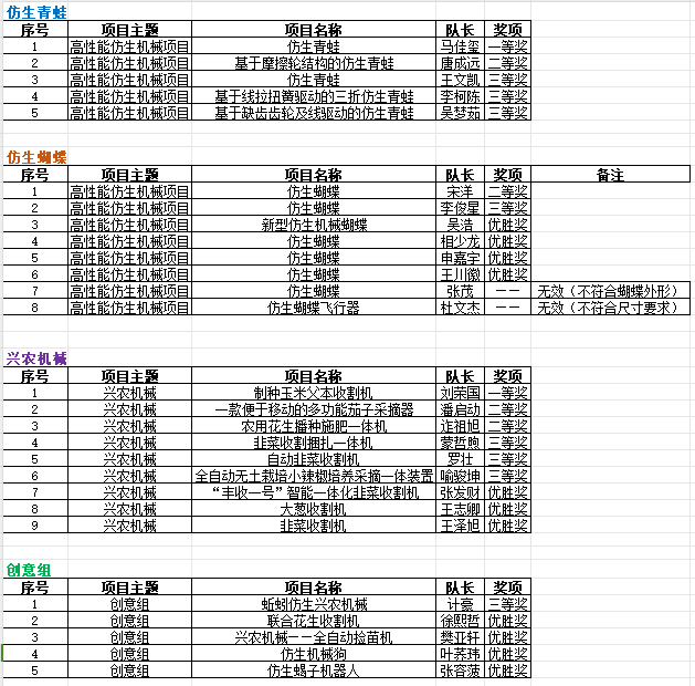 附表:比赛结果公示