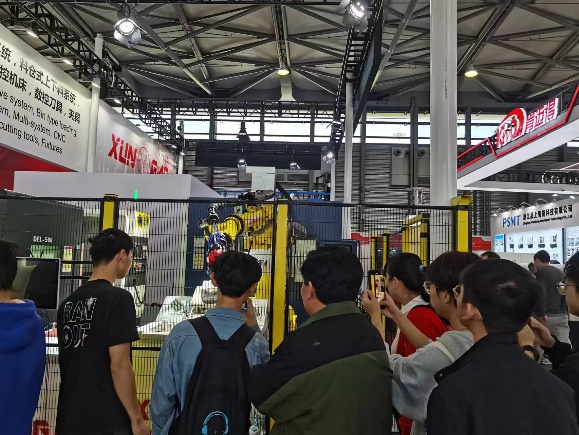 在展会现场,同学们热情高涨,在近距离的机械臂运动画面里深受触动,在大胆提问和实景讲解中收获满满,在琳琅满目的展品间对行业发展现状认识更加深刻。机械专业的黄涛同学惊叹于机械臂能做到那么灵活,加工起零件来一气呵成,除此之外也对数控机床的应用领域有了新的认识。机电专业谭晨同学表示本次参观展览带领大家认识到了制造业实体的公司形象,帮助我了解到自己专业在未来能够辐射的范围。