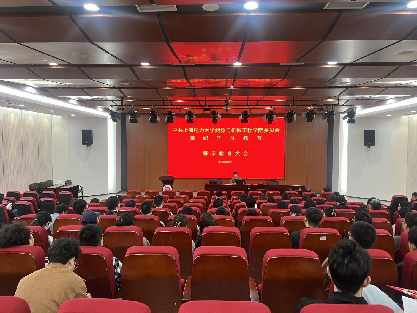 2024年4月29日,能源与机械工程学院在学术楼103报告厅召开2024年全面从严治党警示教育大会,会议由党委书记潘卫国同志主持,全体师生党员参会。