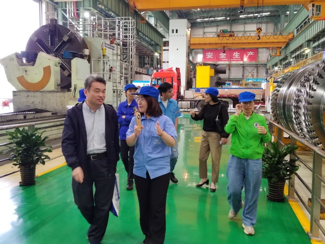 在齐艳娜等人的陪同下,能机学院一行前往临港工厂车间进行参观,近距离观看用于测量汽轮机动平衡的大型动平衡测试仪、“华龙一号”首根出口百万核电低压转子等的生产和安装过程。通过近距离参观设备,老师们感概制造技术的精益求精外,同时表示应该多多带学生们实地走访车间,近距离观察讲解设备,能够让学生更加直观的了解到汽轮机的构造,对加强专业知识的学习提供巨大的帮助,同时感受到制造产业上的“工匠精神”。