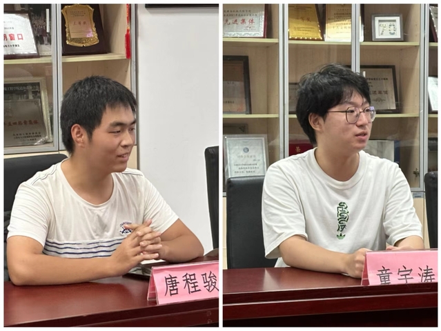 唐程骏、童宇涛两位同学结合自身学习工作的经历,分别从专业学习、科创比赛、实践活动等方面分享了大学生活感悟,助力新生更快、更好地融入并享受大学生活。