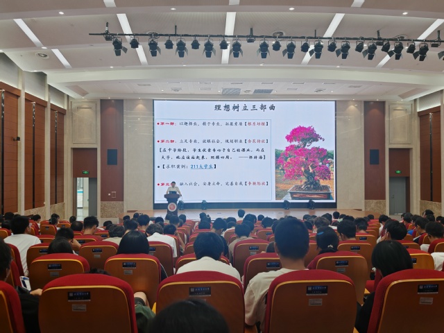 随后,夏国军从哲学层面对理想的意义予以深度解析,并提出“树立理想的三部曲”:以趣择业,精于专业;立足专业,放眼社会;融入社会,完善自我。他指出,当代大学生应基于兴趣学透学精专业知识,不仅要伏案学习还要站起来观察社会,通过实践了解社会,力求将自身所学融入到社会建设、国家发展和民族复兴之中。他激励众多学子要“以兴趣做驱动,以理想做牵引”,从专业、择业和社会三个阶段逐步树立人生理想,实现人生价值。