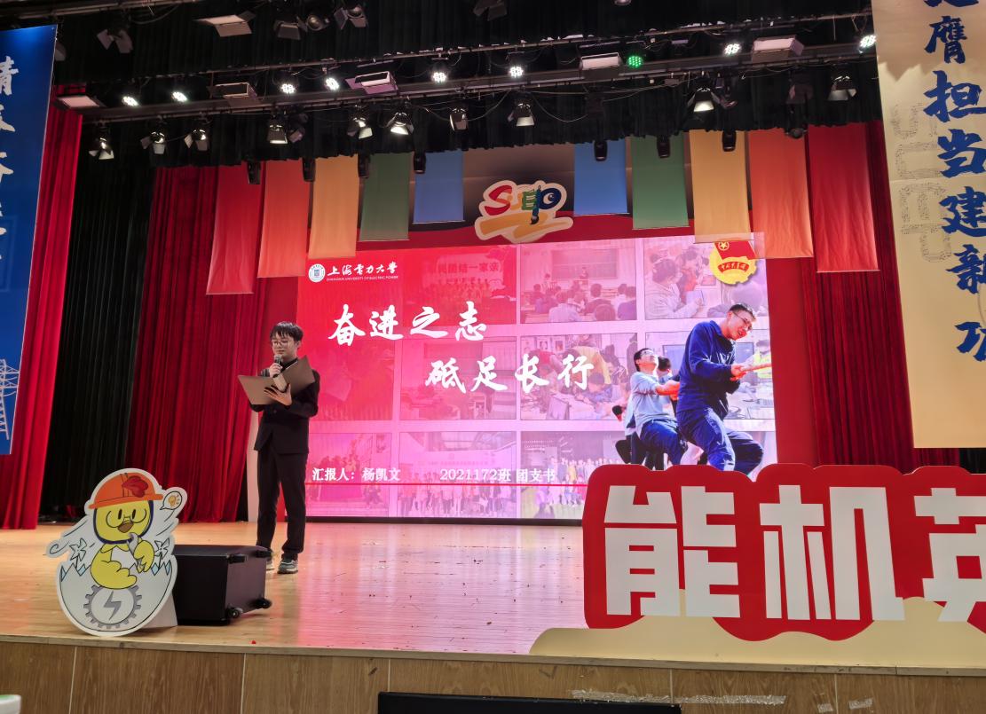 获得“上海市活力团支部”、“上海市活力社团”的2021172班、成图工作社代表进行了现场交流分享,分别从班级建设和社团打造两个维度出发,全方位展现了独特的集体魅力与青春风采。优秀学生干部标兵马宝博展示了自己的工作经历和成长历程,分享自身成长中的感悟和思考,他身上那种勇于奉献、敢于担当的品质让在场的同学深受启发。