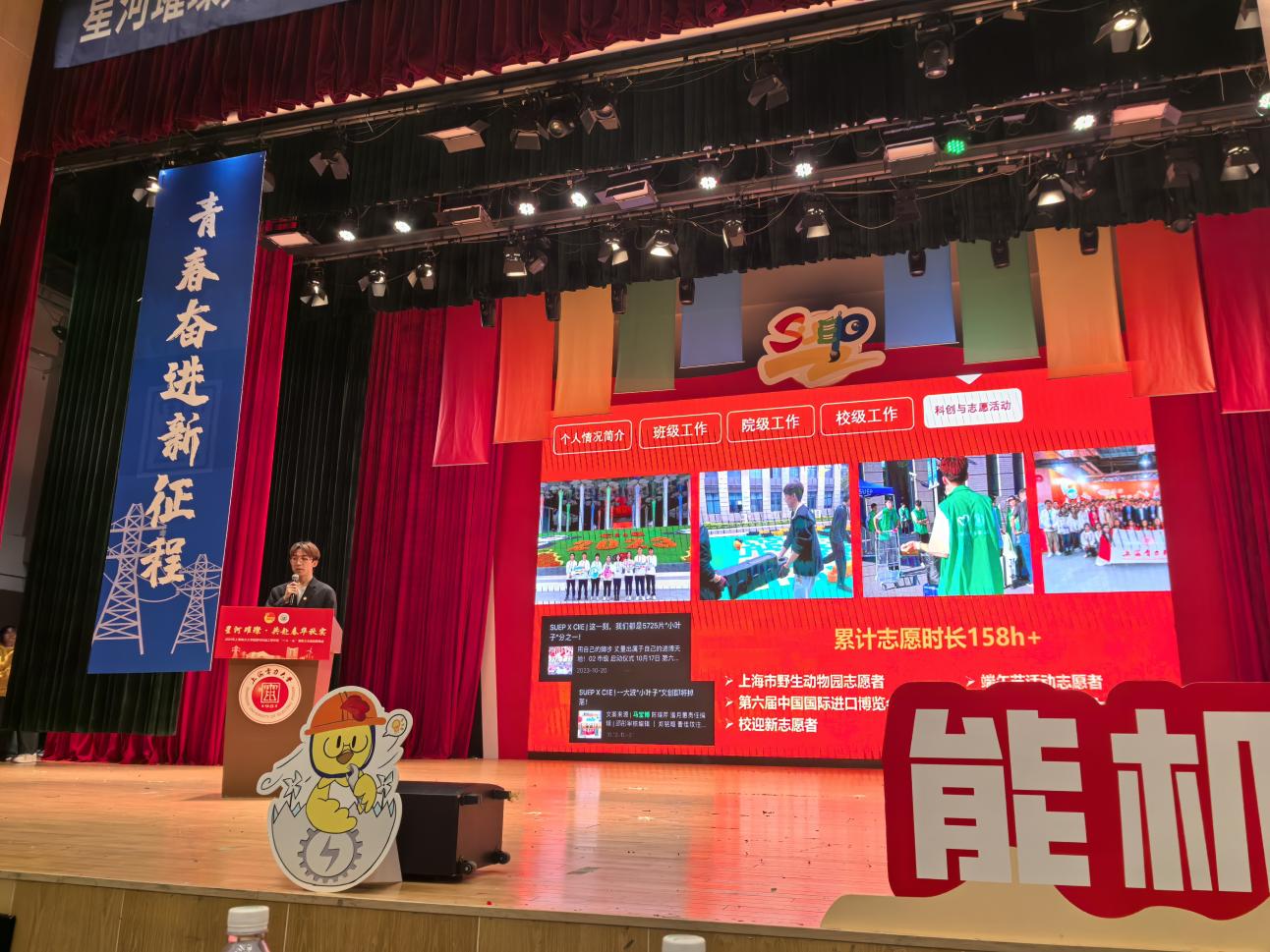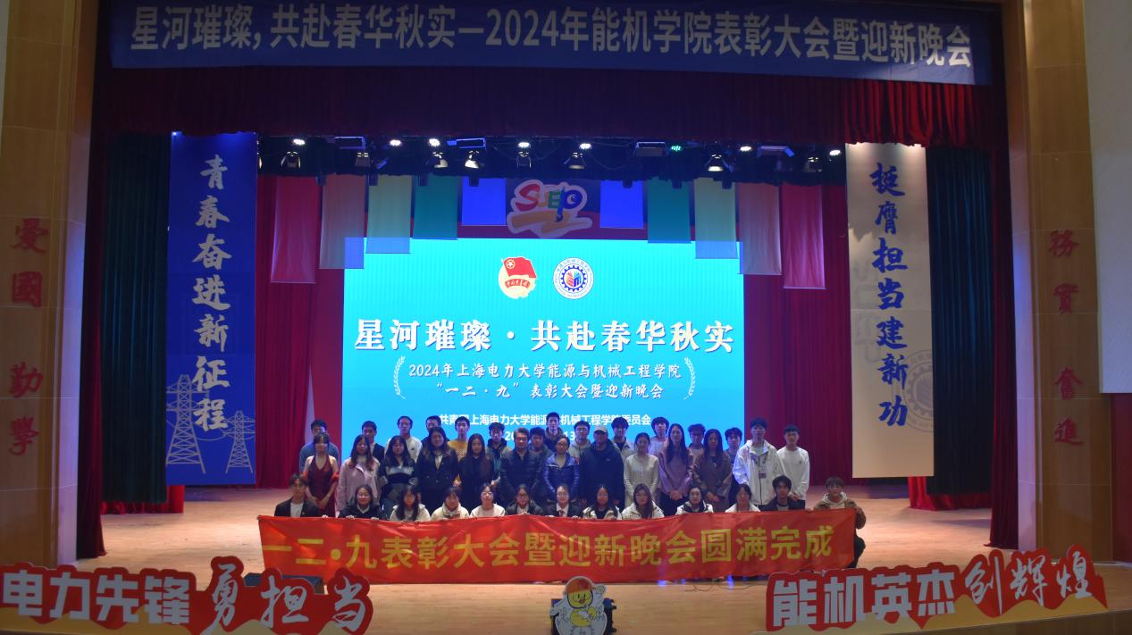 能源与机械工程学院2024年度一二·九表彰大会暨迎新晚会在热烈的氛围中圆满落幕。大会通过一系列表彰环节展示了过去一年中学院青年学生在各个领域取得的显著成绩,以榜样和典型的树立勉励同学们百尺竿头更进一步;通过新生们带来的精彩绝伦的表演节目,展现青年学生的活力与激情,鼓励青年学生们充满活力、奋发有为。相信能机学子在未来将继续发挥电力先锋的担当精神,在学习生活上不断提升自我、再创辉煌。