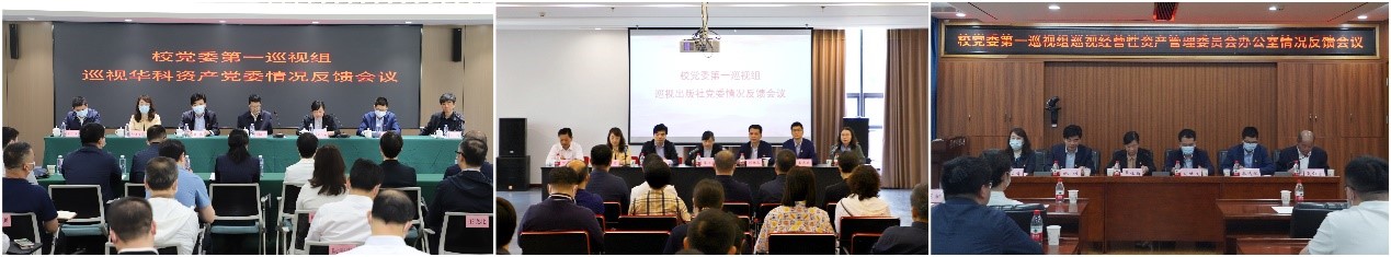 图为校党委第一巡视组巡视武汉华中科大资产管理有限公司党委、WilliamHill中文出版社党委、经营性资产管理委员会办公室情况反馈会。