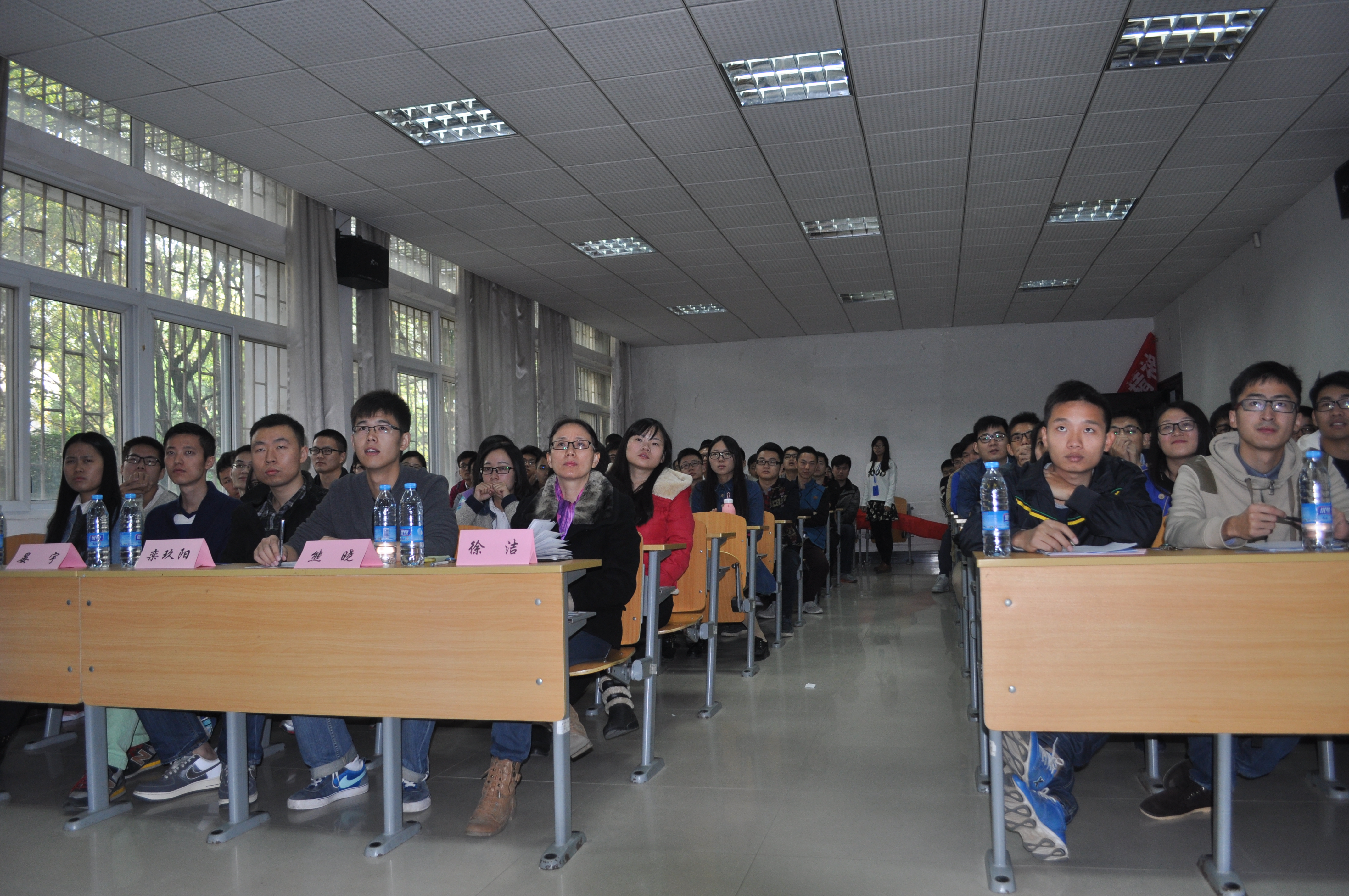 会议开始,主持人首先对交流嘉宾进行了介绍。杨娟学姐有着傲人的简历,她是国家奖学金的获得者,是同学口中的学霸,被称为“offer 收割机”,曾拿到包括百度、搜狐、美团、网易、华为等八个offer,最终签约大众点评;栾玖阳学长曾是校研究生会主席,也是校优秀学生干部,更是校优秀党员,拿过国家奖学金,求职期间收到百度、腾讯、华为和网易游戏等知名公司的offer,最后签约网易游戏;而对于晏宇学长来说,仅仅是签约微软公司就已经足够厉害,又何况其曾经同样也是国家奖学金、校优秀研究生干部的获得者呢?主持人的介绍引得台下的观众惊叹连连。