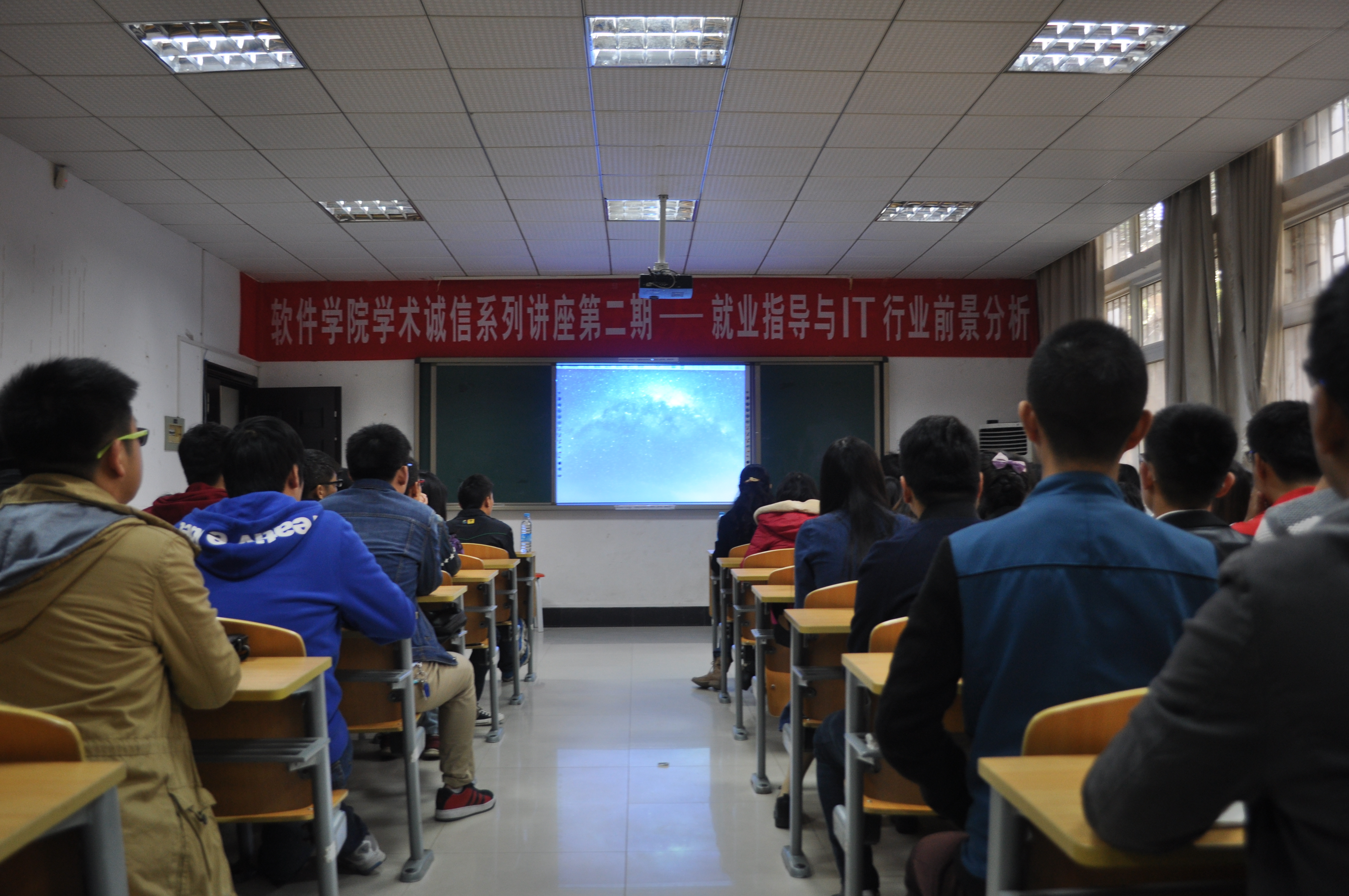 11月3日上午十点,william威廉中文于学院108室举行学术诚信系列讲座第二期之就业指导与IT行业前景分析交流会,本次交流会邀请2013级优秀研究生代表杨娟、栾玖阳、晏宇和王佳伟为大家做经验交流,旨在帮助同学们获取前人经验,了解本专业找工作的特点,更好的面对自己的实习以及今后的求职之路。交流会除本院同学积极参加外,更吸引不少外来院系自发前来观看,整个交流会欢笑连连,气氛非常活跃。