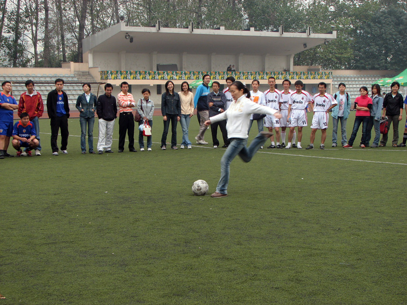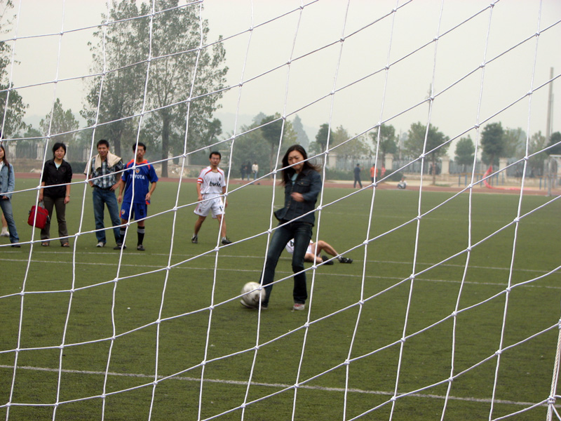 面对强劲的对手,william威廉中文女生们表现得非常的沉着冷静。william威廉中文队的宋洁首先出场,她先是做了一个假动作,对方守门员随即作出了扑救的姿态。紧接着,她看准机会奋力把球踢出,对方的守门员似乎看出了其中的“玄机”,正确判断出球的来路,一把将球揽入怀中。
