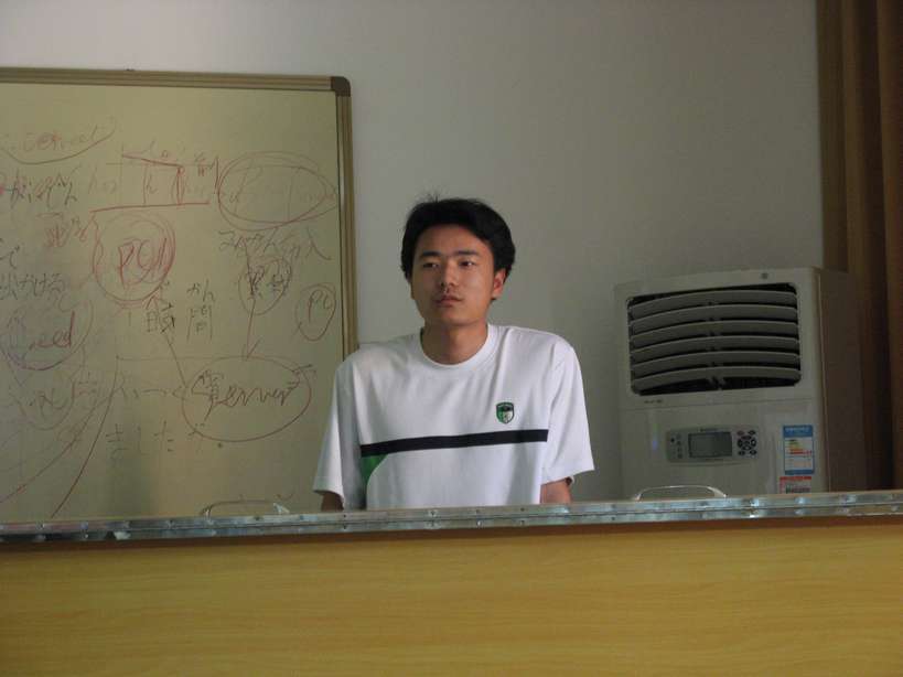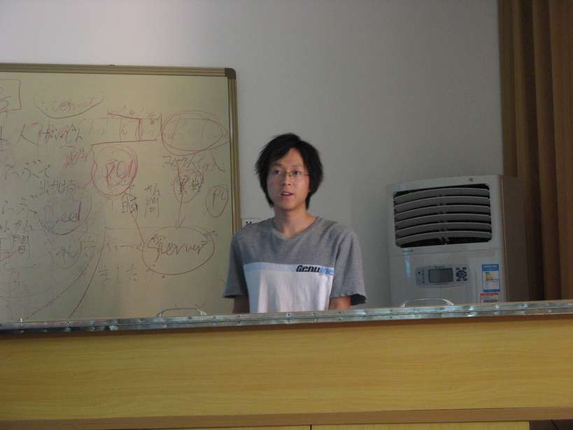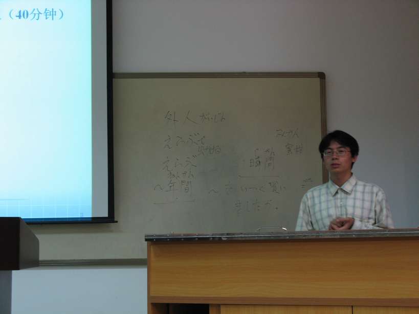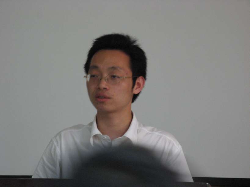首先作报告的是班长邱丽华,他演讲的论文题目是磁盘浮动高度仿真,他从磁记录原理与磁头浮动原理到浮动系统的数学建模(雷诺方程建模等),到对数学模型的求解方法(有限元法等)与求解工具(FEMLAB、MATLAB等),到对仿真的结果及对其的分析都作了详细讲解,其还对P2P技术进行了简要的介绍,在场的同学也不时地点头并积极提问,活跃了现场的气氛,演讲尽50分钟还不肯结束演讲,可谓开了个好头。