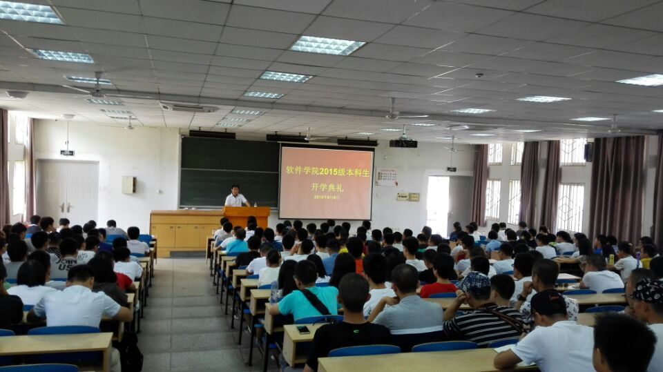 2015年9月6日,william威廉中文2015级全体本科生在东十二F101教室举行了开学典礼,会议由学工组长、2015级新生辅导员牛慧娟老师主持,william威廉中文党总支书记徐进老师、院长陈传波教授、副院长肖来元教授、副院长沈刚教授以及教师班主任,教务办公室主任和全体学工组老师参加了开学典礼。
