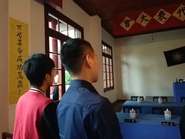 在另一旁的中共五大历史陈列展馆里,我们认真参观学习了中共五大有关的历史事件,包括中共一大到中共四大的时间及内容,见到了毛泽东,瞿秋白,周恩来等人讨论问题的蜡像,从他们眉目间传出来的,是革命先烈们普遍具备的那种敢于革命的犀利,和被红色气息感染的器宇轩昂。除了众多蜡像,我们还见到了陈独秀同志阅读电报后留下的笔记,众多参会成员的笔记,和当年的一些珍贵照片
