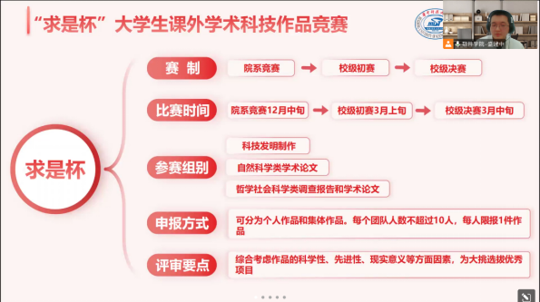 对即将到来的“求是杯”大学生课外学术科技作品竞赛,盛博士进行了重点讲解,对比赛中需要注意的地方进行了介绍和提示。