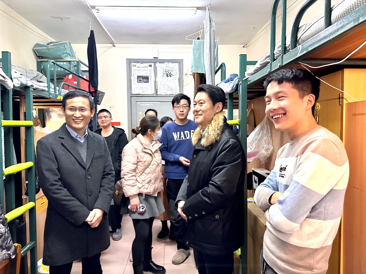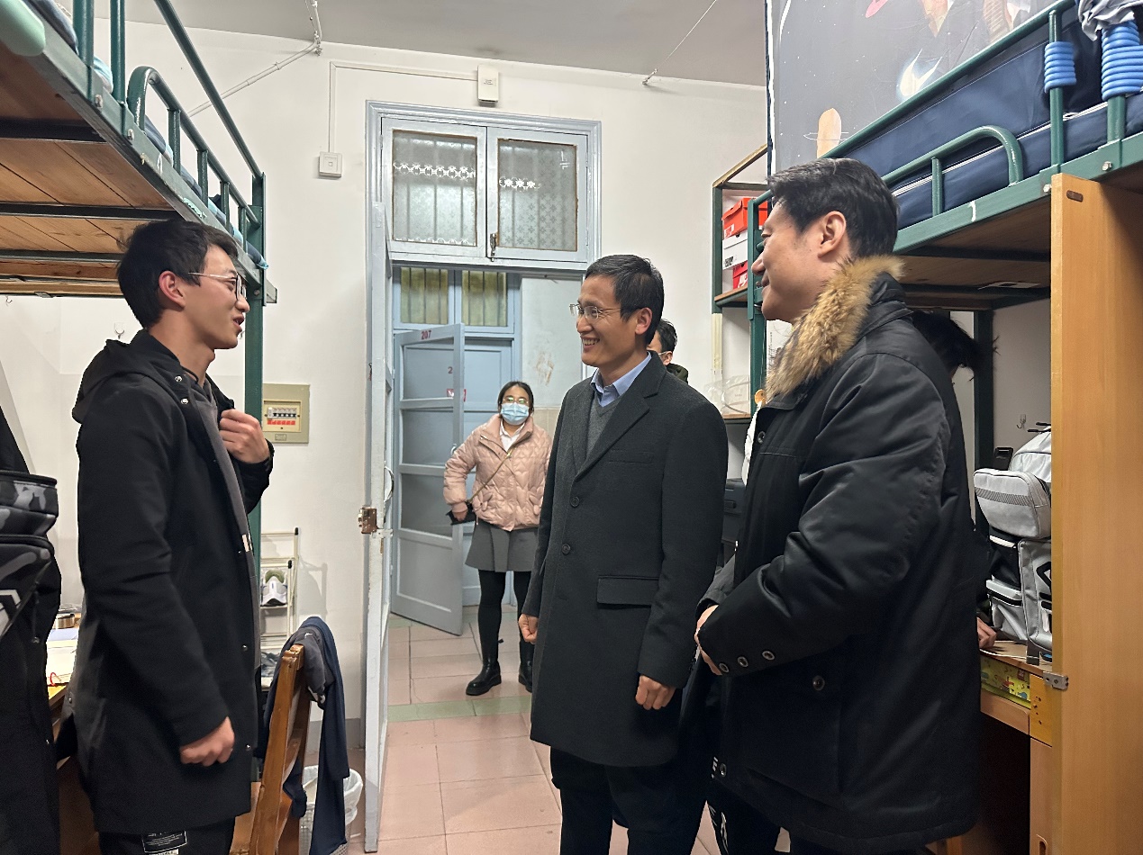 11月30日,王士贤、徐洁一行前往韵苑16栋详细了解学生在校衣食住行情况和学习情况。叮嘱同学们注意保暖,劳逸结合。