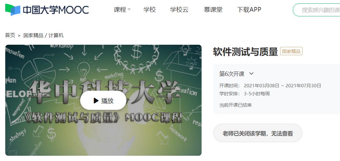 《软件质量与测试》于2018年被评为国家级精品在线开放课程。