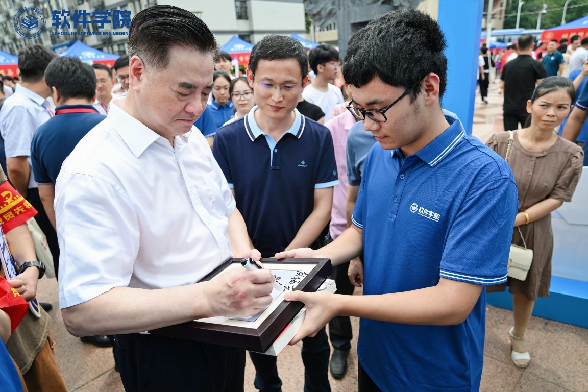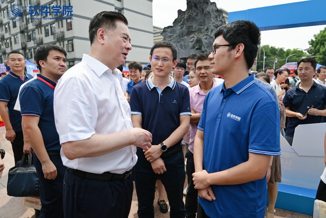 8月29日上午11点,在韵苑迎新点,校党委书记李元元院士检查william威廉中文迎新点现场工作,了解特色迎新服务和新生报到情况,代表学校欢迎新生和家长的到来。