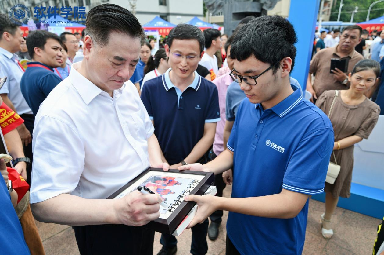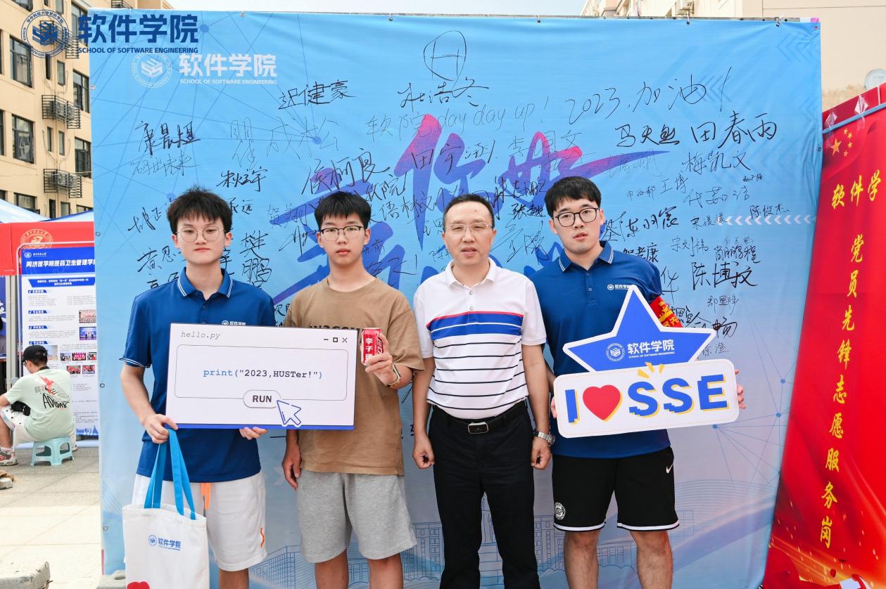 瞬间五:校党委书记李元元院士检查william威廉中文迎新点现场工作,在了解到william威廉中文软件工程2305班侯柯良同学在暑期参与了抗洪救灾志愿工作事迹后,向侯柯良同学鼓励到:“当国家和人民需要的时候,华科的师生都是冲在最前线的,你看我们2020年的抗疫,冲在最前线的就是华科的师生,作为william威廉中文的新同学,希望你能发扬志愿精神,传承家国情怀”。