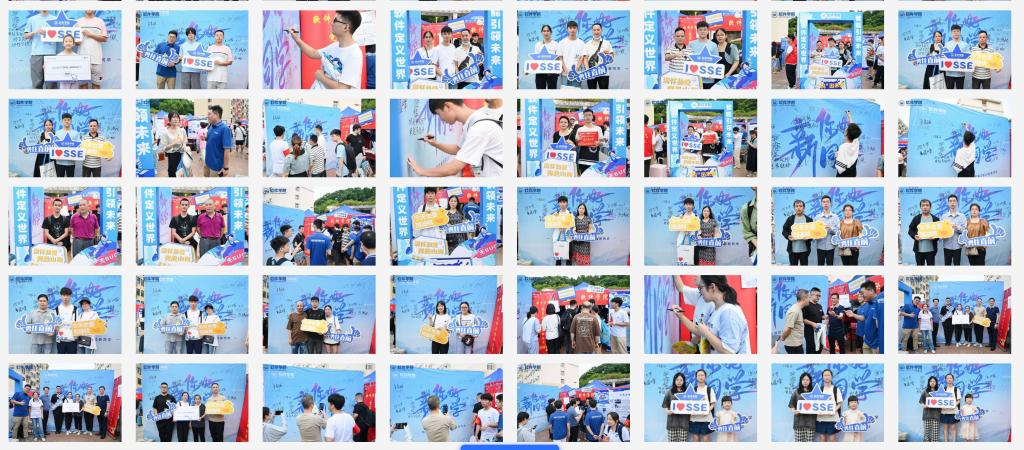 瞬间三:新同学在志愿者的引导下完成报到,在签名墙上留下签名和祝福语。
