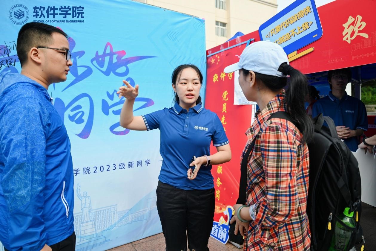 瞬间七:教师班主任们也来到迎新现场,和各自班级同学亲切交流,了解班级同学情况。