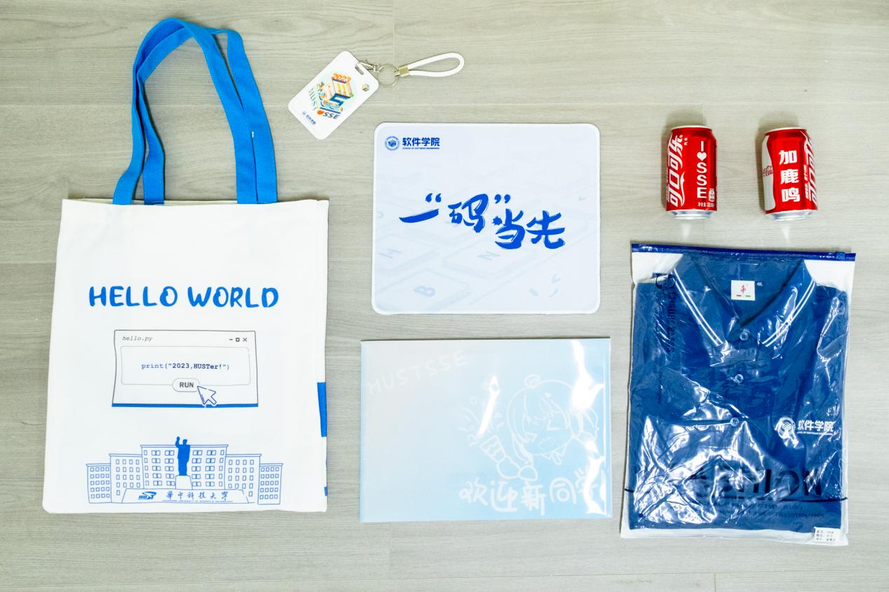 瞬间一:学院为116位新同学都准备了精美大礼包,包括:文化衫、帆布袋、卡套、文件夹、鼠标垫,此外还给每位同学准备了印有对应名字的可乐,每一份欢迎都是独家定制。
