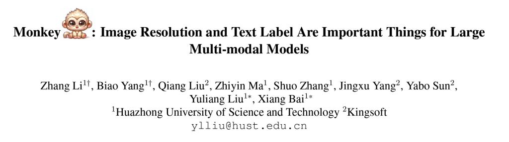 GPT-4因其展示的强大多模态能力而引发了对多模态大语言模型(MLLM)的研究热潮。多模态大语言模型是整合了文本和视觉处理能力的先进人工智能系统,旨在模仿人类的感知方式,结合图像和语言进行理解和推理,被认为是向通用人工智能迈进的关键步骤之一。11月,院长白翔教授团队发布了新的多模态大模型——Monkey。