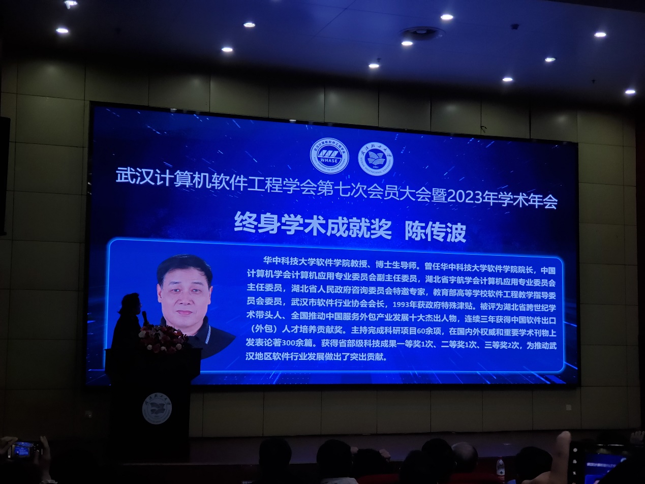 12月10日,武汉计算机软件工程学会第七次会员大会暨2023年学术年会在武汉轻工大学金银湖校区图书馆附楼三楼报告厅召开。经学会副理事长李国徽教授提名,武汉计算机软件工程学会评审,我院陈传波教授获得武汉计算机软件工程学会最高奖项“终身学术成就奖”。